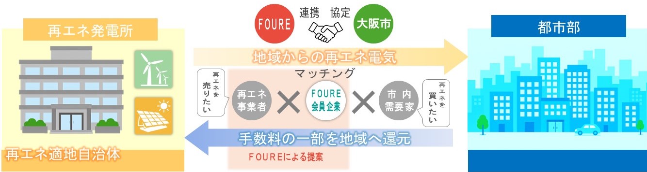 市内の住宅や小中学校からの再エネ供給、さらに当協会と連携して全国の再エネ電源が立地する地域に裨益する新たな再エネ調達スキーム等により、再エネ確保が難しい大都市中心市街地での脱炭素化を推進します 。