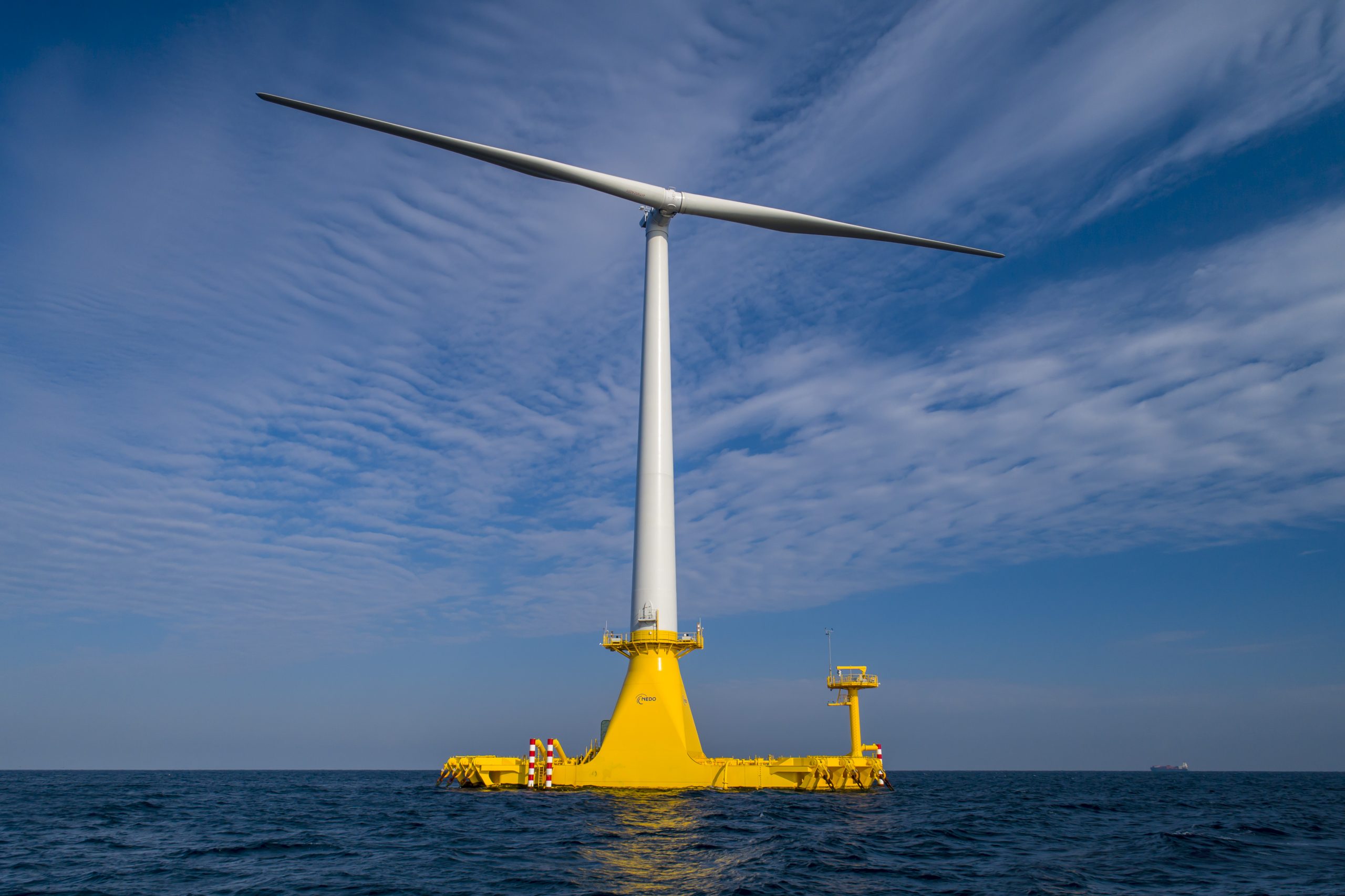 国立研究開発法人新エネルギー・産業技術総合開発機構(NEDO)の委託事業として、日本近海の気象・海象条件に適した次世代浮体式洋上風力発電設備および施工方法の開発・検証を行い、コスト低減の実現を目指し、実証運転を実施しました。