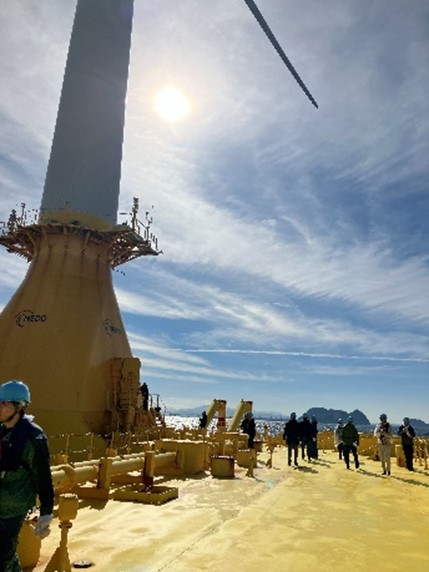 着床式・浮体式問わず、洋上風車の現場視察は初めての経験で、浮体式構造物の大きさやその安定性には驚かされました。