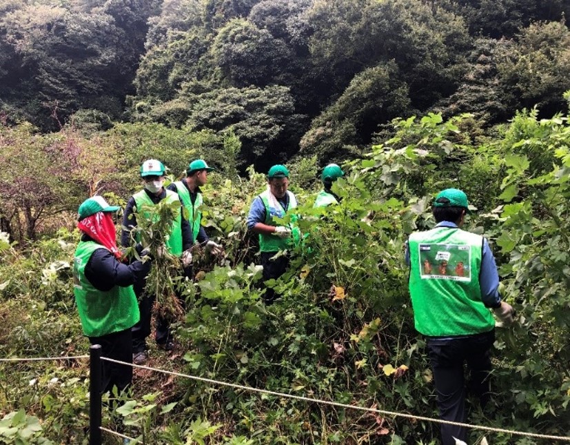 (社員による外来種(セイタカアワダチソウ)の除草状況)
