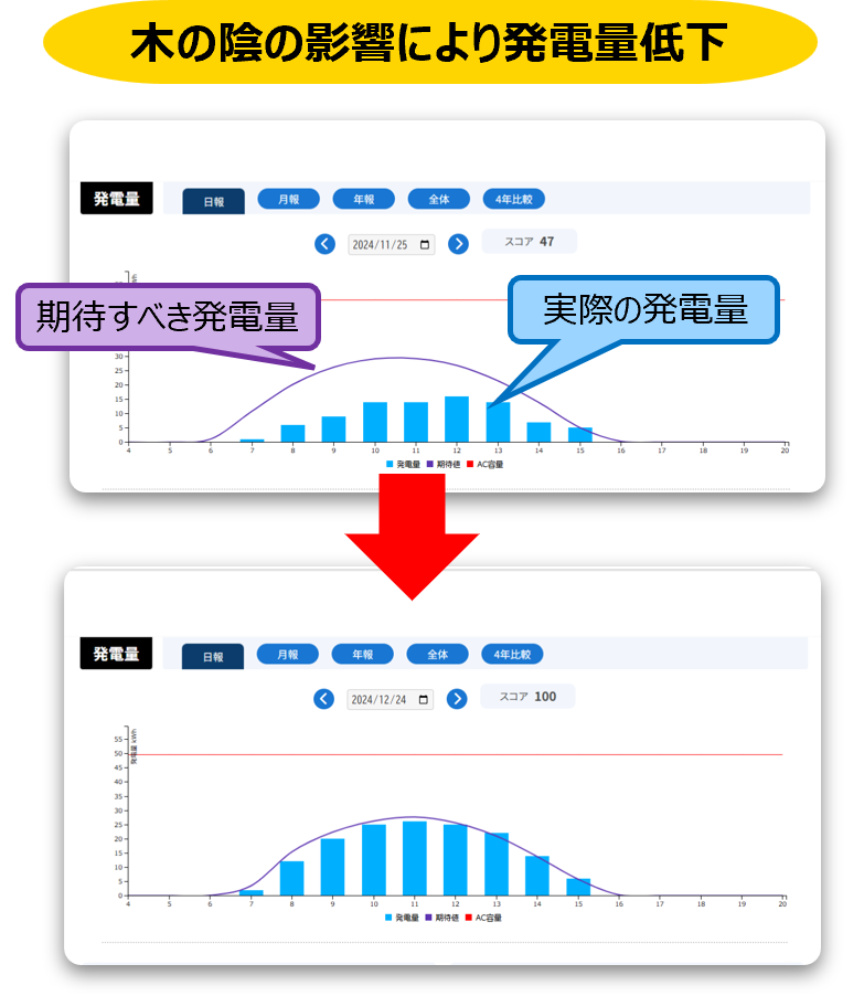 ソラミルメ導入により、発電量低下に気づけた事例