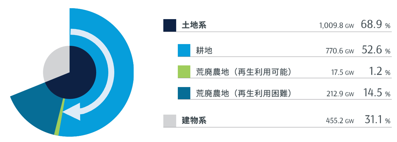 ・太陽光発電設備を設置できる場所の過半を農地が占めている