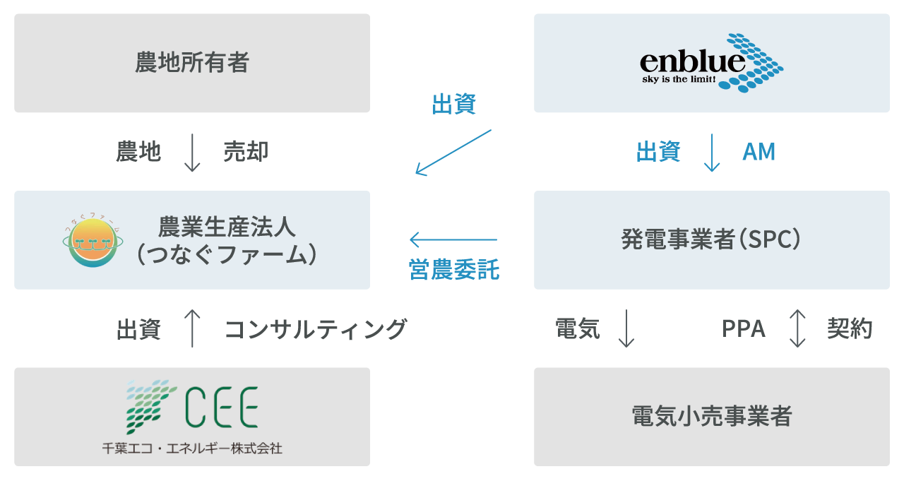 ・現時点では、FIT案件の低圧の82区画の設備を弊社グループが所有して売電事業を行い、つなぐファームが営農を担っています。