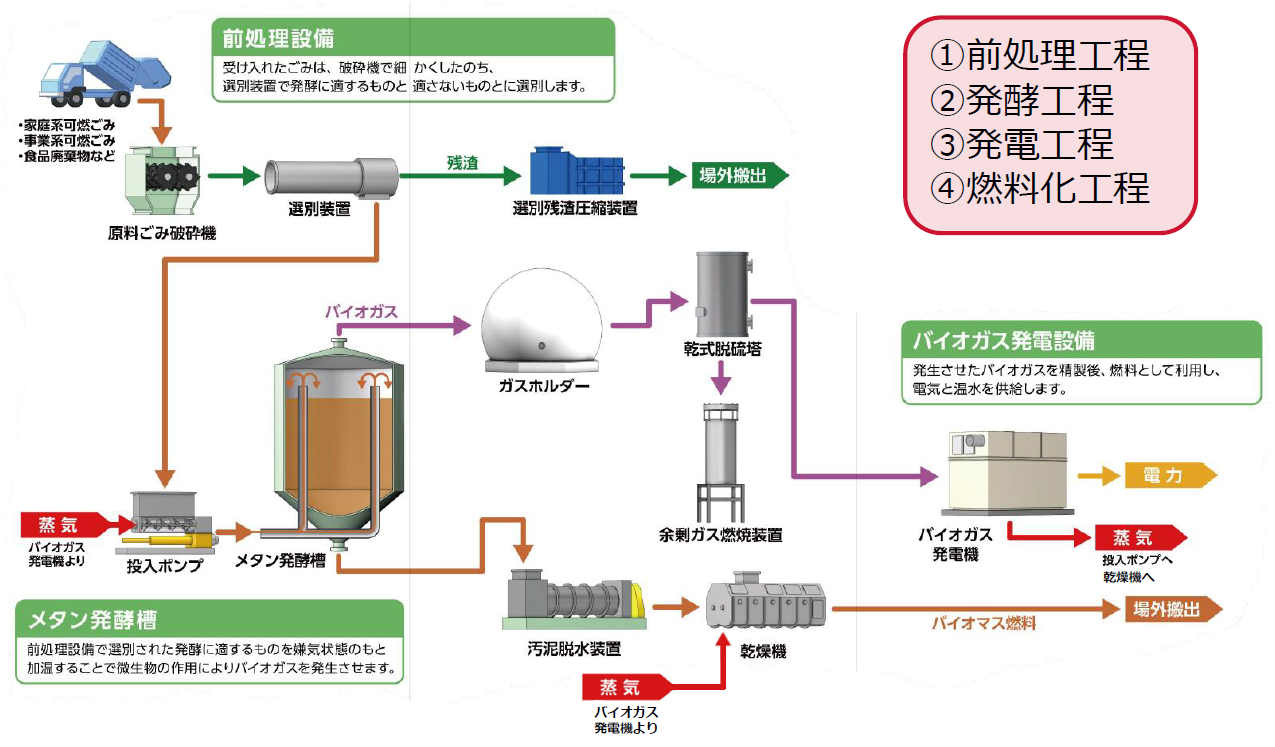 ・寄居バイオガスプラントは、食品廃棄物や紙ごみなどの一般廃棄物(バイオマス)をメタン菌により発酵させることでバイオガスを生成させ、このバイオガスを発電用燃料として利用する再生可能エネルギー発電施設