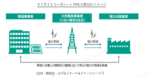 ✓本案件において、需要家である法人は、事前に合意した価格および期間における再エネ電力売買契約を締結することで、市場価格の変動の影響を受けることなく、安定して再エネ電力を調達することが可能となっており、本案件は再エネ活用促進に資する取組と思料される。
